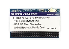 Super Talent's Flash Disk Modules (FDMs) provide non-volatile storage in a compact design, making a perfect fit for embedded applications. This FDM model mounts horizontally and is available with either a 40- or 44-pin IDE interface.